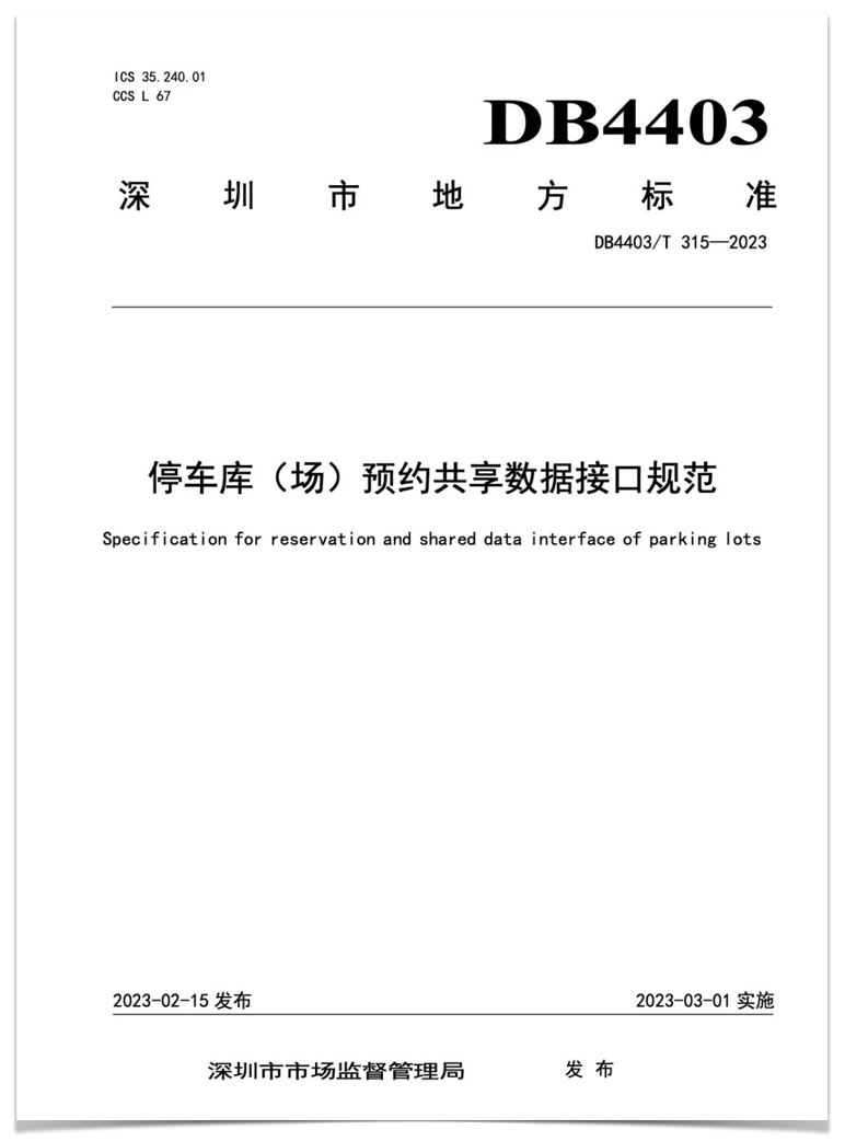 深圳市地方標準DB4403/T 315—2023《停車庫(場)預(yù)約共享數(shù)據(jù)接口規(guī)范》規(guī)定了停車庫(場)預(yù)約共享停車業(yè)務(wù)的總體要求、功能要求、數(shù)據(jù)接口要求、數(shù)據(jù)傳輸要求,適用于深圳市范圍內(nèi)停車庫(場)管理系統(tǒng)或停車管理平臺與預(yù)約共享停車平臺之間的數(shù)據(jù)交換以及功能設(shè)計與開發(fā),為深圳市預(yù)約共享信息化建設(shè)提供了標準化的指導(dǎo)。