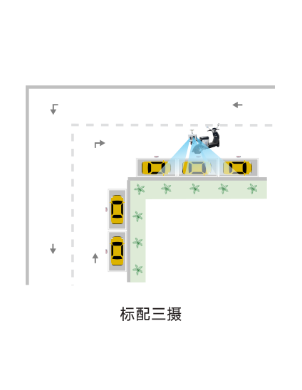 標(biāo)配三攝,可用于右側(cè)泊位巡檢,適用平行、垂停、斜停等泊位類型。